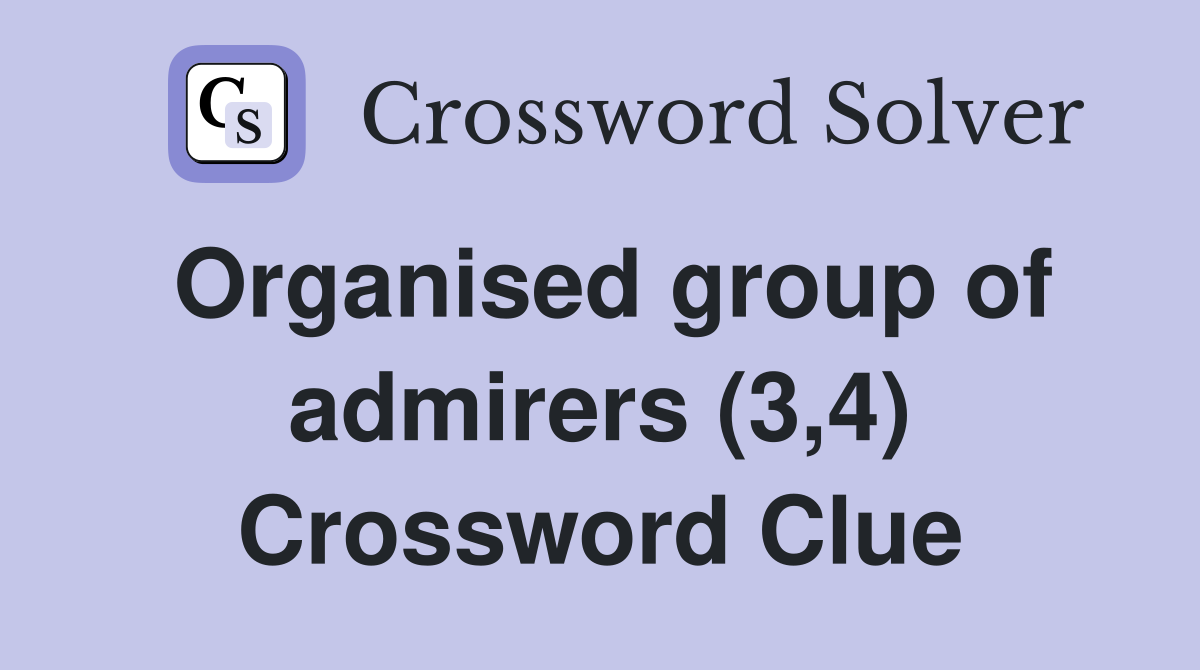 Organised group of admirers (3 4) Crossword Clue Answers Crossword