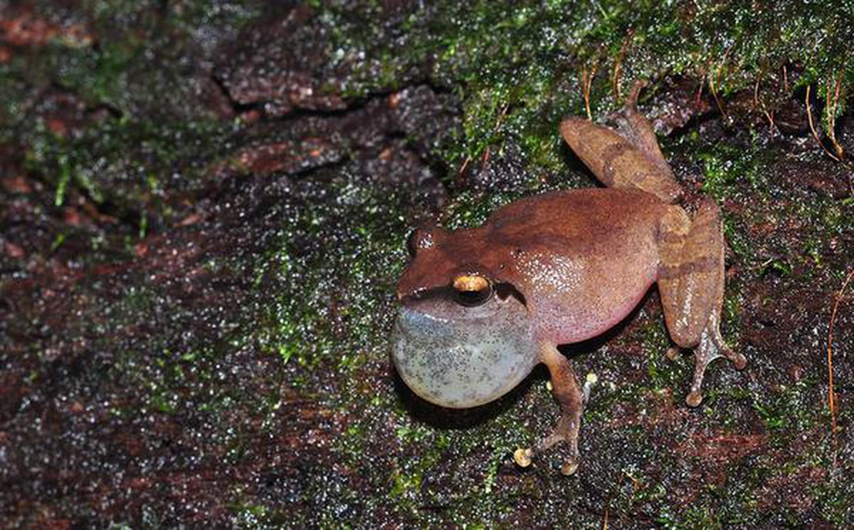 Group of Toads Gathered Around Pond in Forest Setting Stock