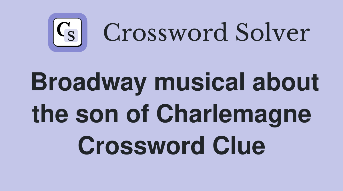 Broadway musical about the son of Charlemagne Crossword Clue Answers