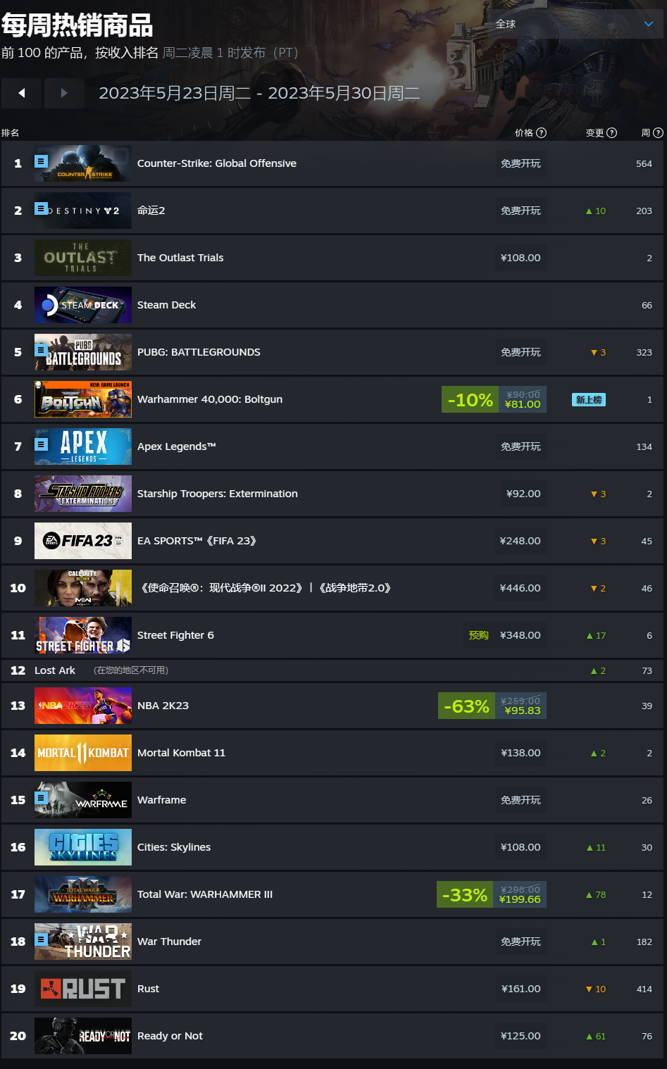 Steam 周销榜:《逃生:试炼》二连冠,《战锤 40K:爆矢枪》空降 STEAM 逃生:试炼 战锤 40K:爆矢枪 新浪新闻