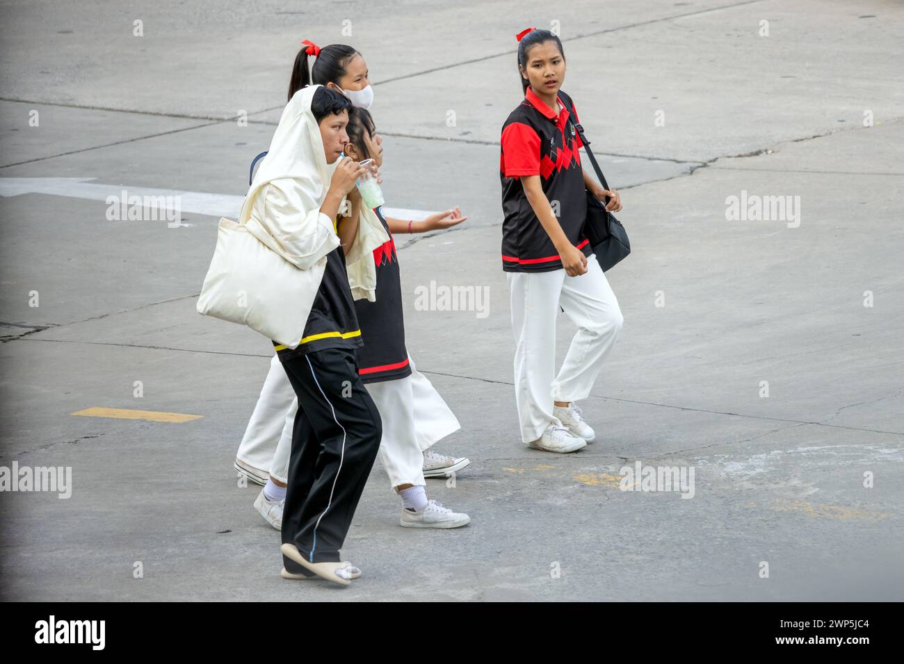 SAMUT PRAKAN THAILAND DEC 01 2023 A group of young women walk