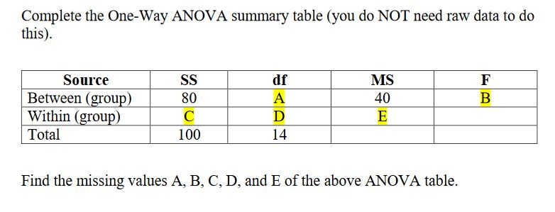 Solved Complete the One Way ANOVA summary table (you do NOT Chegg com