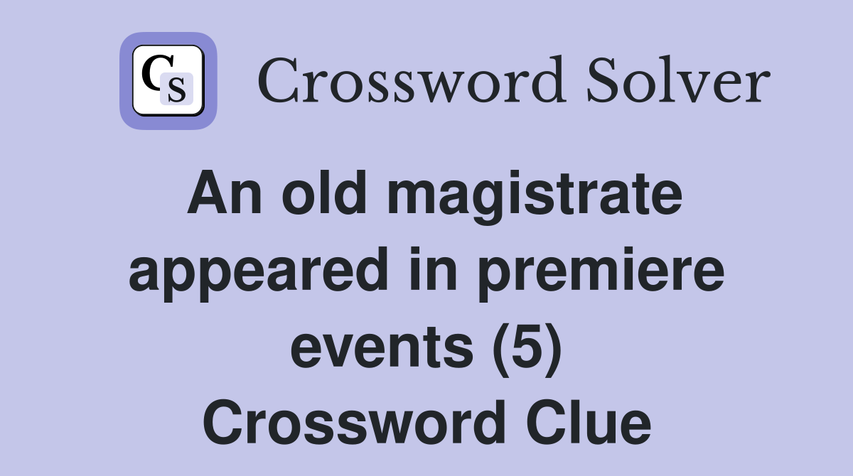 An old magistrate appeared in premiere events (5) Crossword Clue
