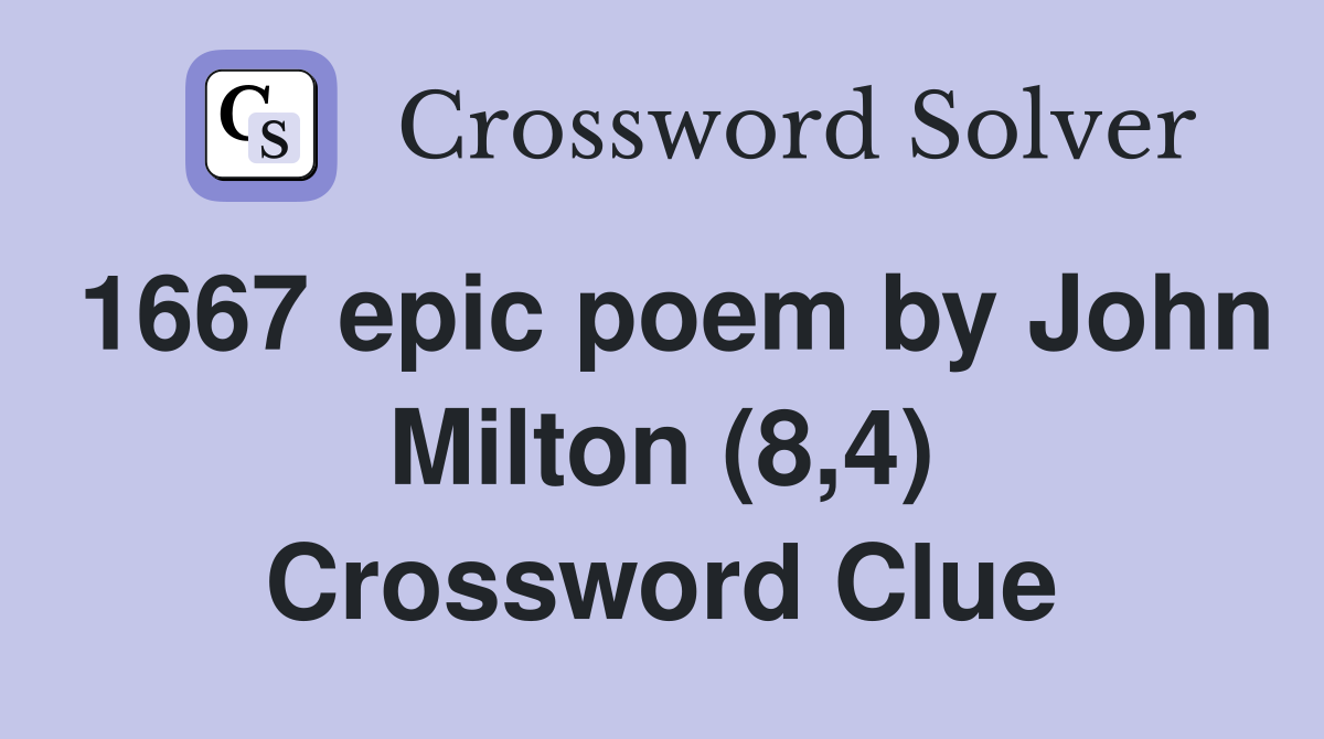 1667 epic poem by John Milton (8 4) Crossword Clue Answers