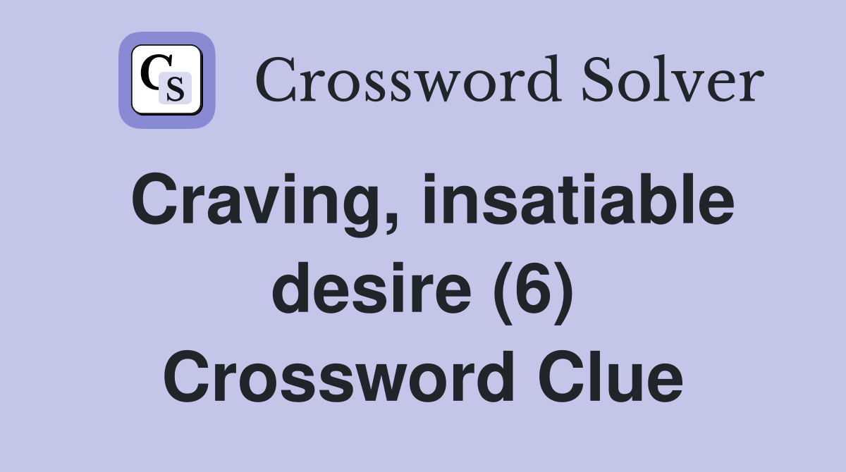 Craving insatiable desire (6) Crossword Clue Answers Crossword Solver