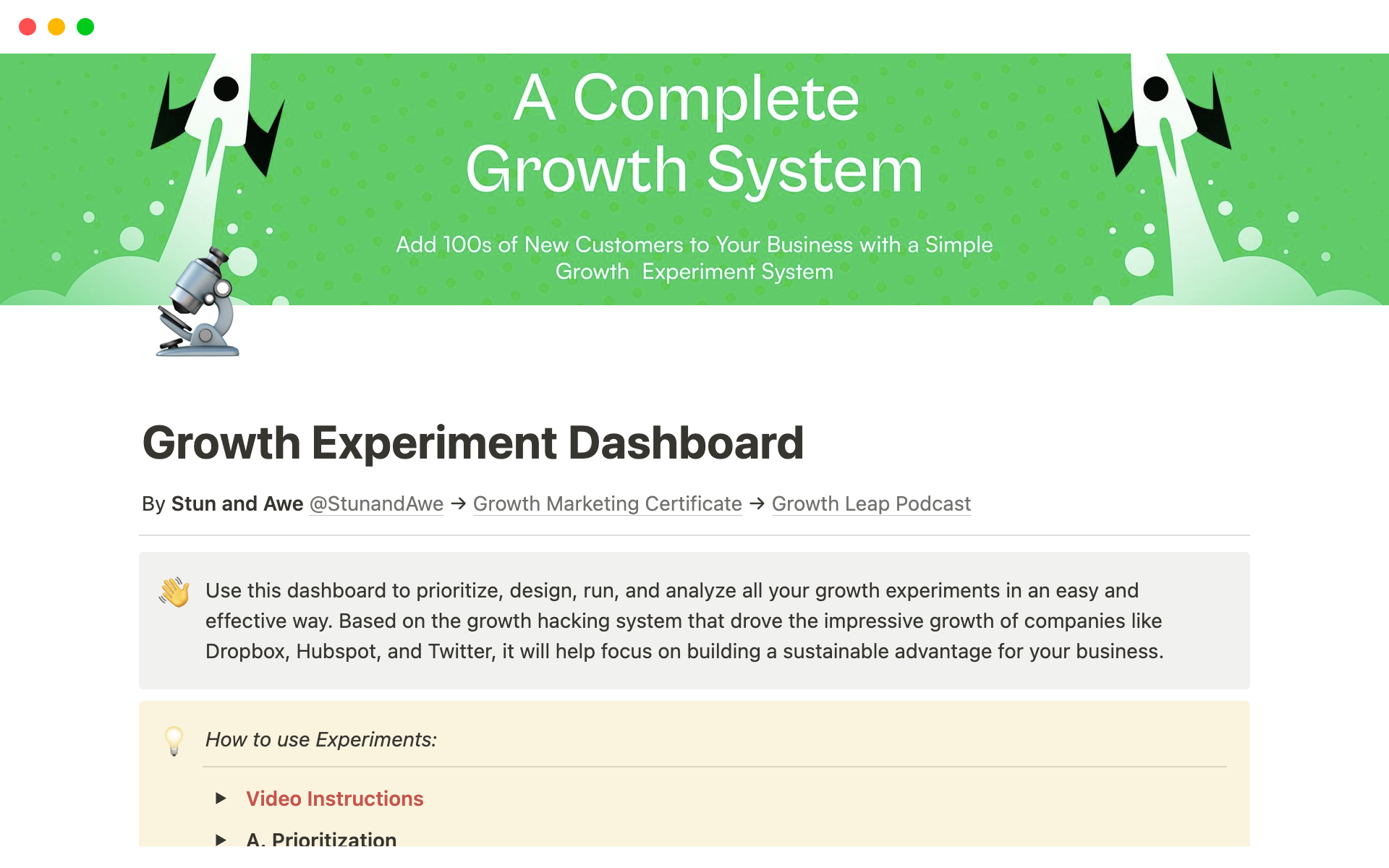 Growth Hacking (Experiment) Template FREE Ready to Use