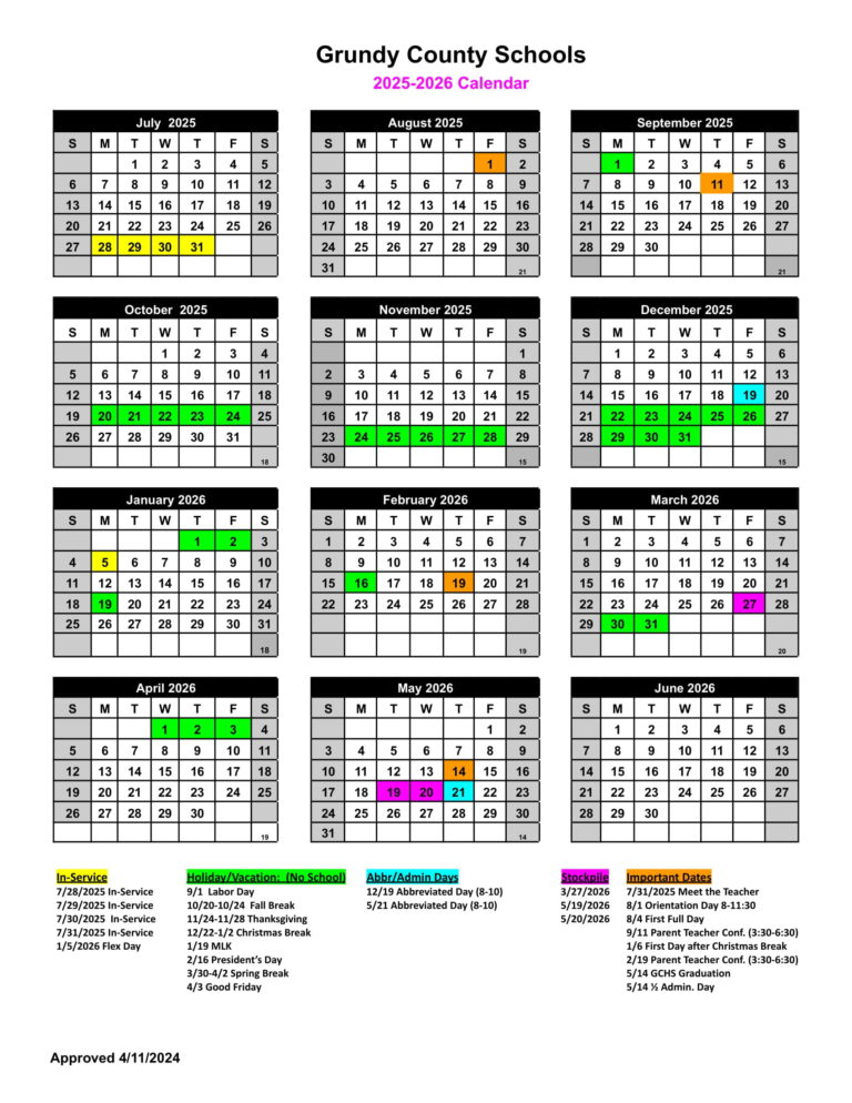 Grundy County Schools Holiday Calendar 2023 2024 District School Calendar