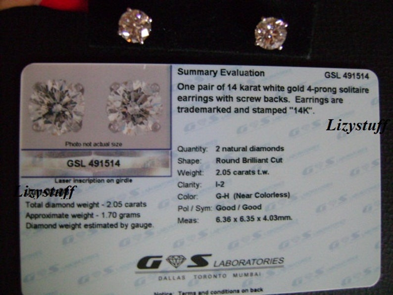 2 05 Carat Diamond Stud Earrings GSL Certificate Classic Etsy