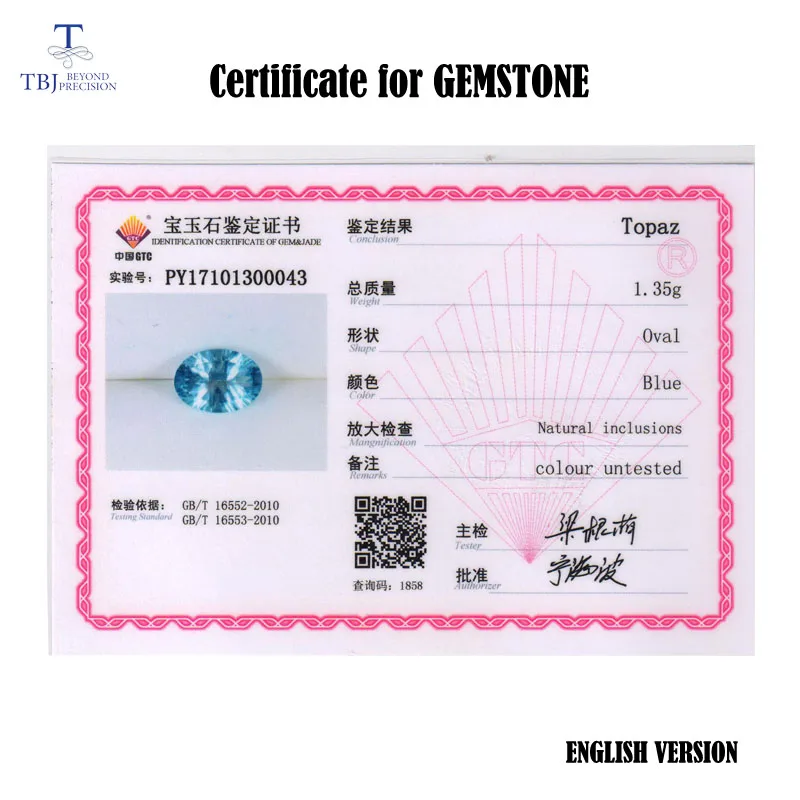 Tbj Gtc Certificat De Bijoux En Pierres Précieuses Et En Vrac Frais