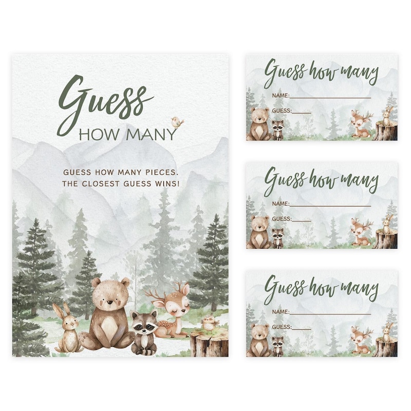 Candy Guessing Game: Rustic Baby Shower Sign Cards (digital Download