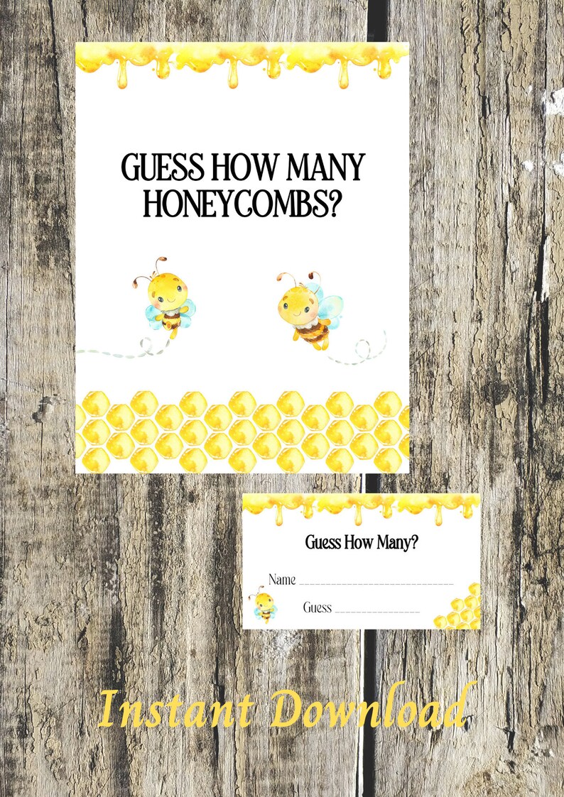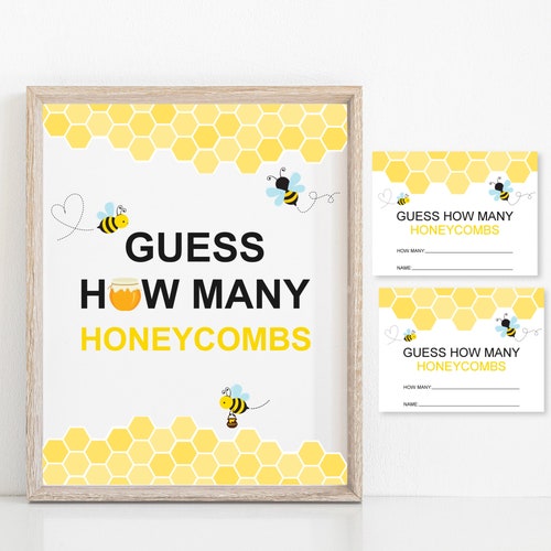 Guess How Many Honeycombs Game Printable Sign Bee Baby Etsy
