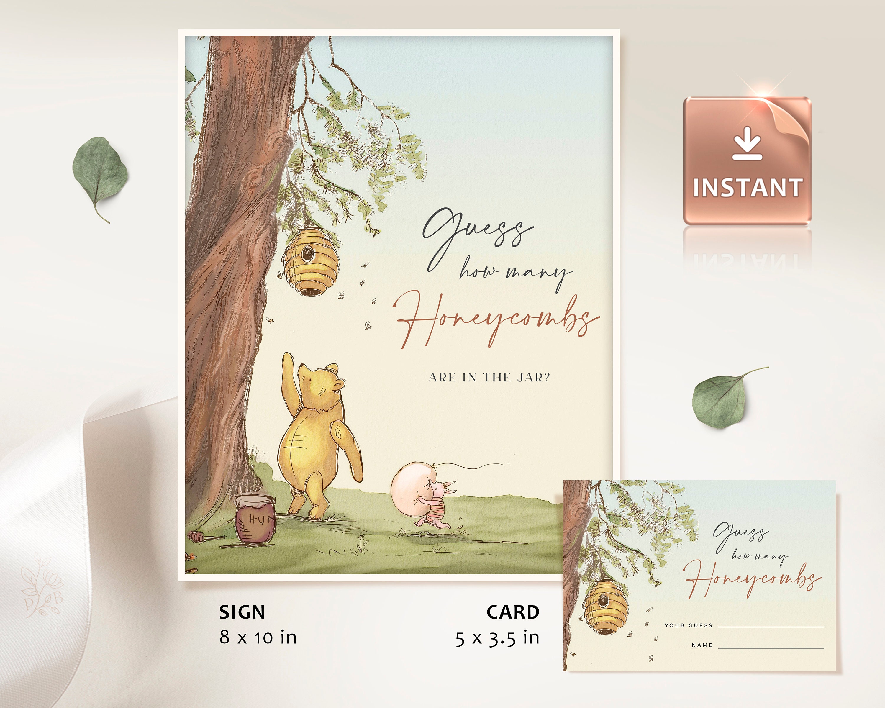Greenery Winnie The Pooh How Many Honeycombs Game Baby shower gender