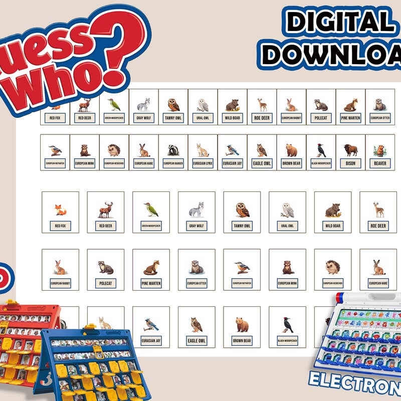 Guess Who Cards Board Game Cards Game Card Game Night Digital Cards