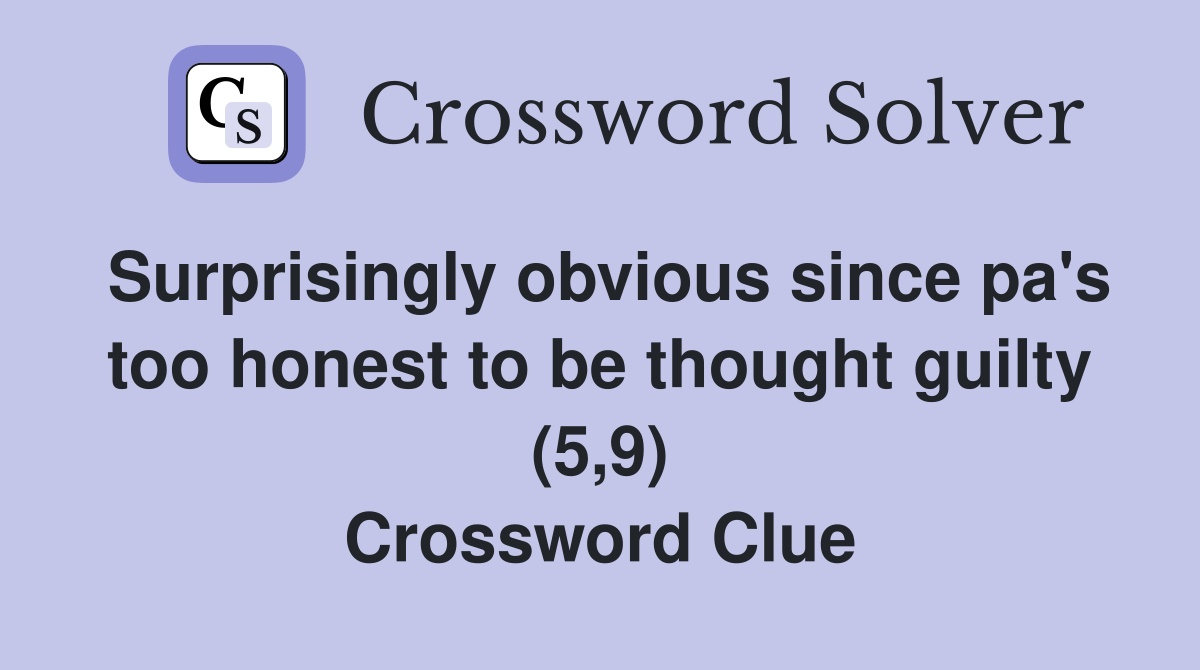 Surprisingly obvious since pa #39 s too honest to be thought guilty (5 9