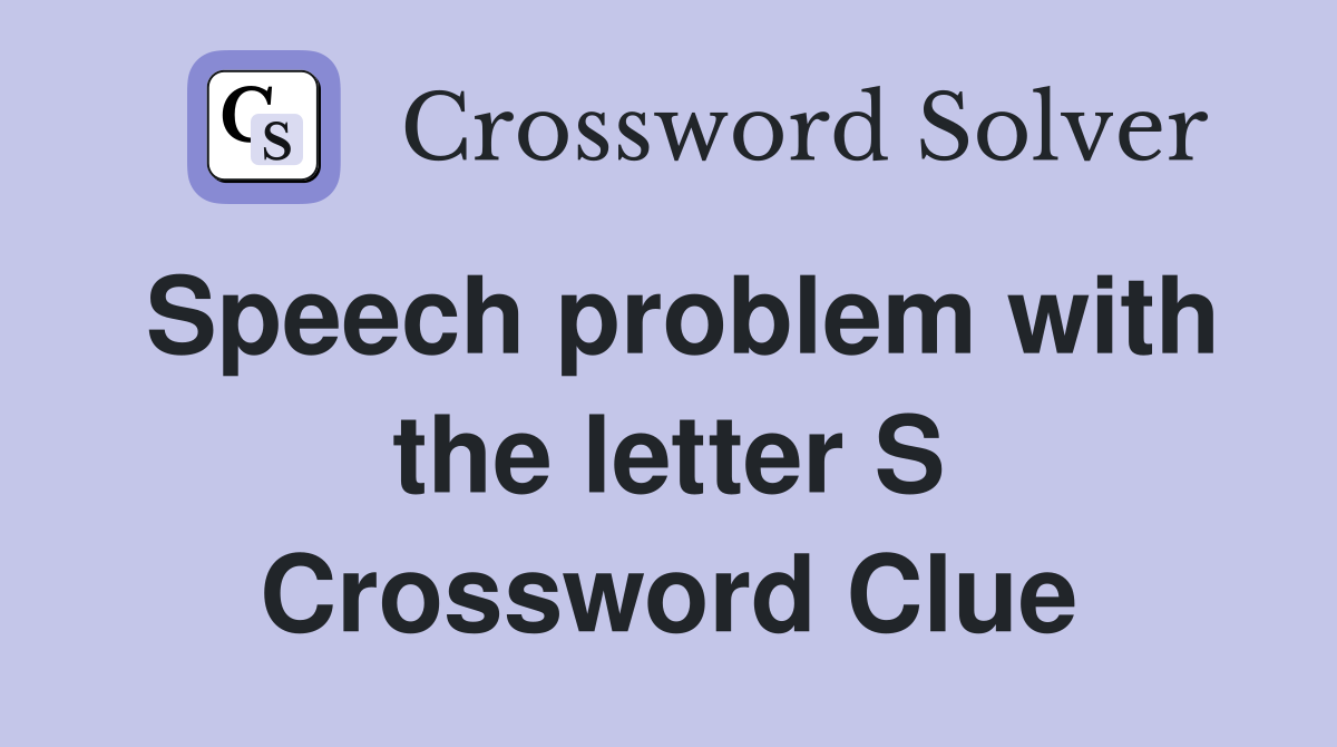 Speech problem with the letter S Crossword Clue Answers Crossword