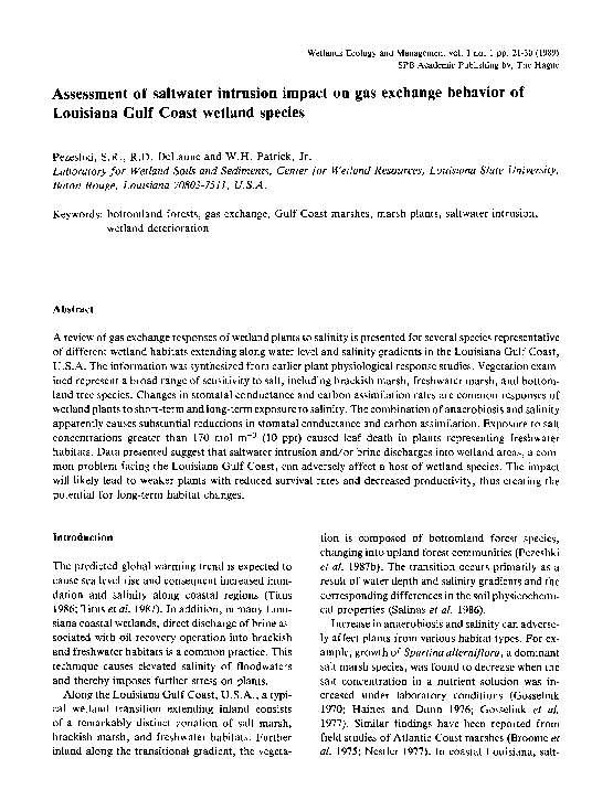 (PDF) Assessment of saltwater intrusion impact on gas exchange behavior