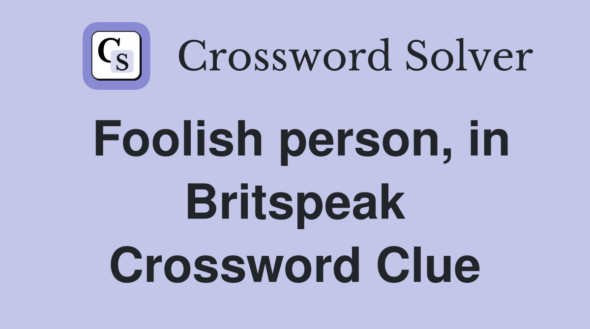 Foolish person in Britspeak Crossword Clue Answers Crossword Solver