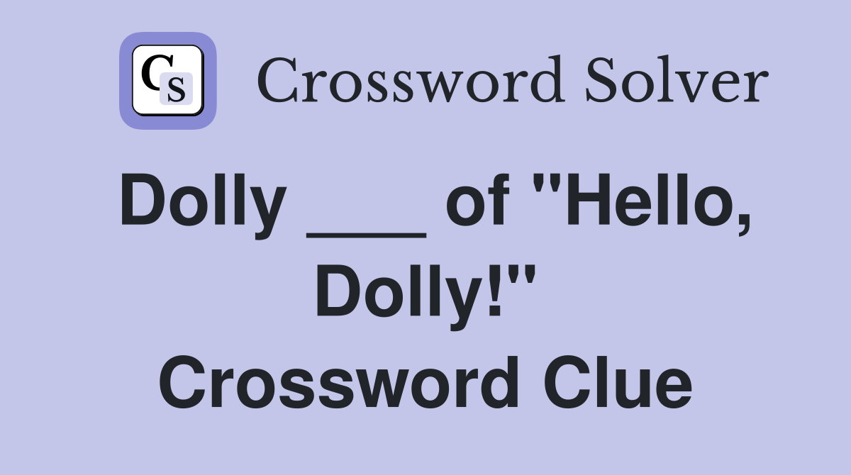 Dolly of quot Hello Dolly quot Crossword Clue Answers Crossword Solver