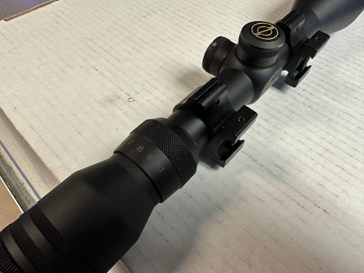 SIMMONS 3 10X44 WIDE ANGLE RIFLE SCOPE WITH RINGS IN GOOD CONDITION SEE