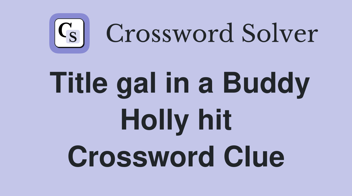Title gal in a Buddy Holly hit Crossword Clue Answers Crossword Solver