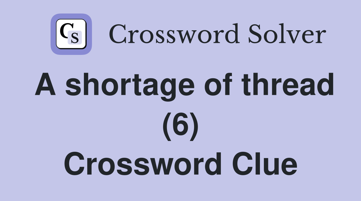 A shortage of thread (6) Crossword Clue Answers Crossword Solver