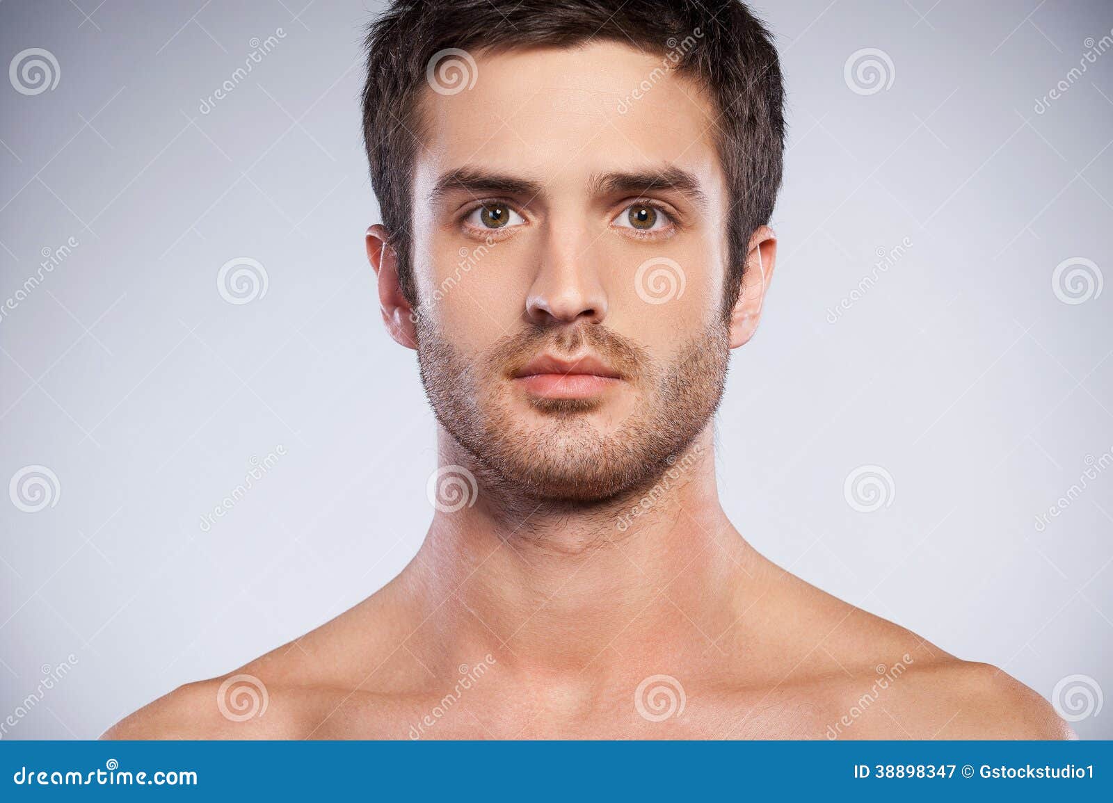 Attractive Male Model with Short Hair Posing in Studio on Isolated