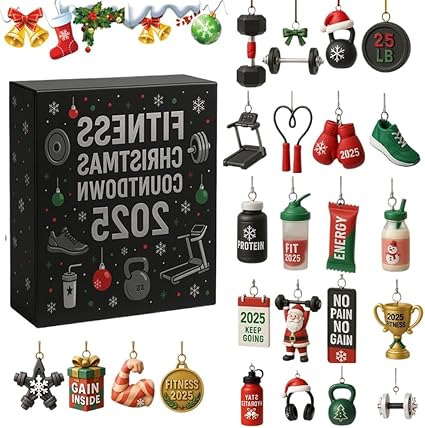 Gym Advent Calendar Stocking Stuffers 24 Days Gym Equipment Ornaments
