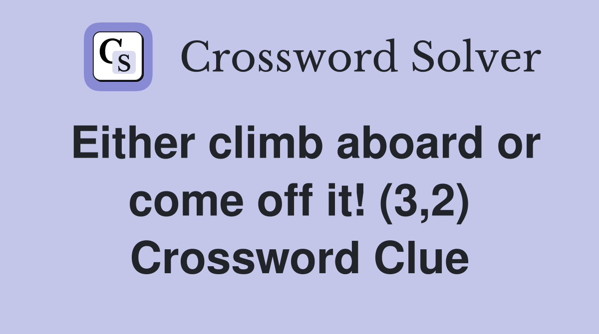 Either climb aboard or come off it (3 2) Crossword Clue Answers