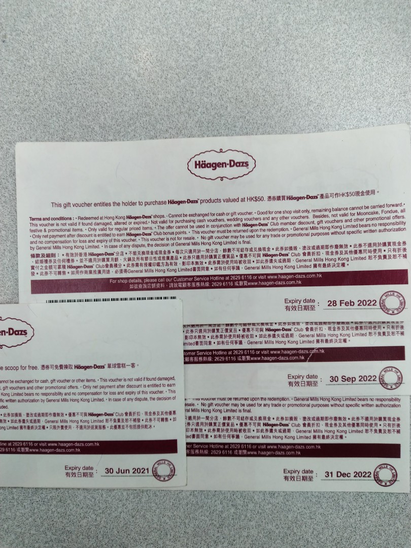 Haagen Dazs Coupon 想交換百佳/Aeon/一田/美心/sogo 現金劵 1:1 門票&禮券 現金券、兌換券、禮券