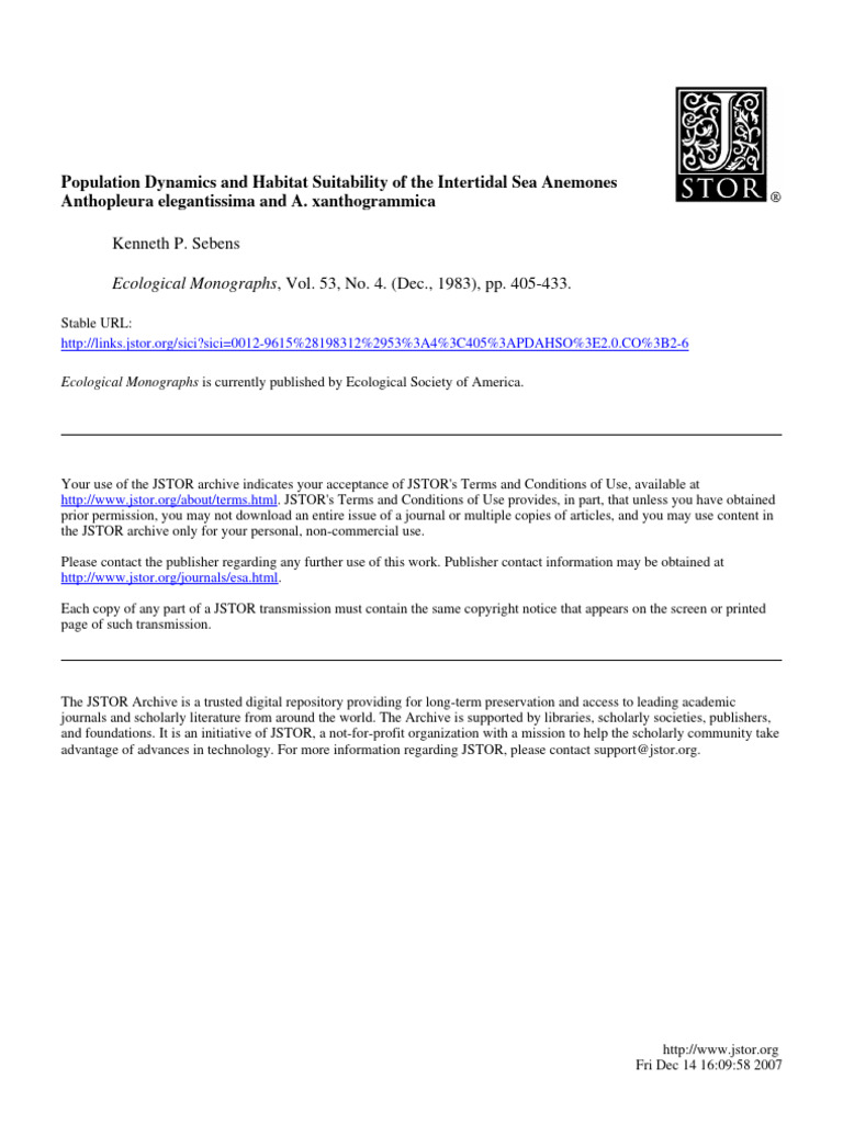 Population Dynamics and Habitat Suitability of The Intertidal Sea