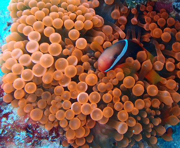 Two Clown Fish are Gracefully Swimming among Vibrant Anemones in Their