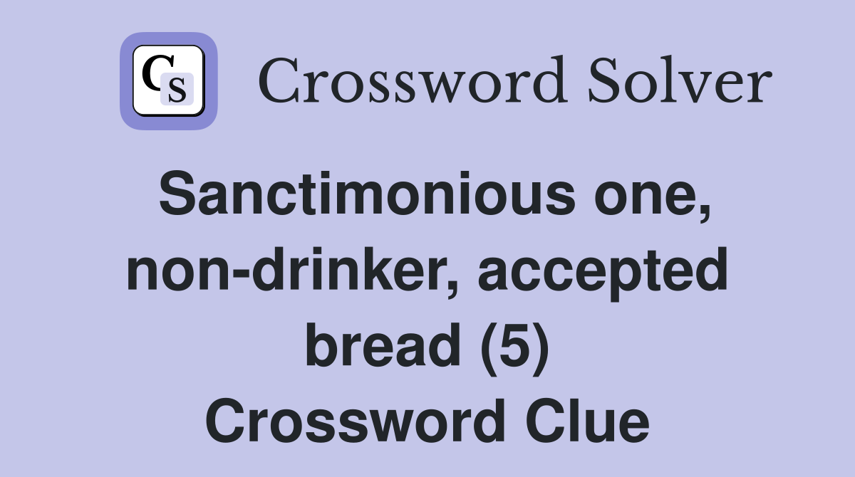 Sanctimonious one non drinker accepted bread (5) Crossword Clue