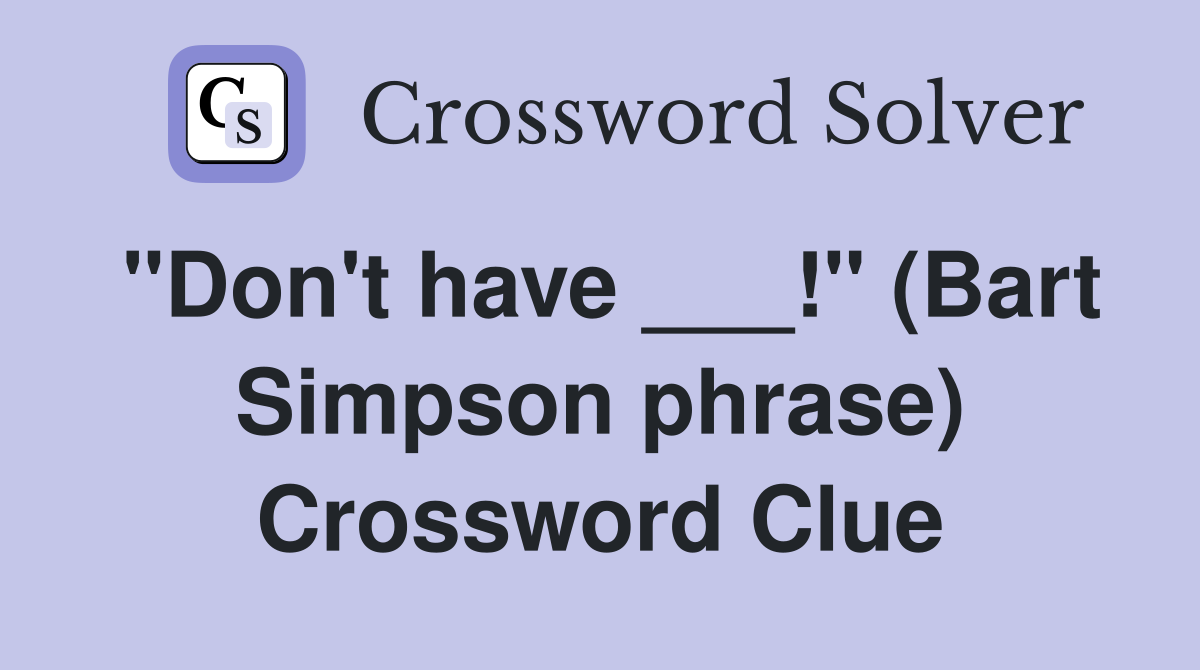 quot Don #39 t have quot (Bart Simpson phrase) Crossword Clue Answers