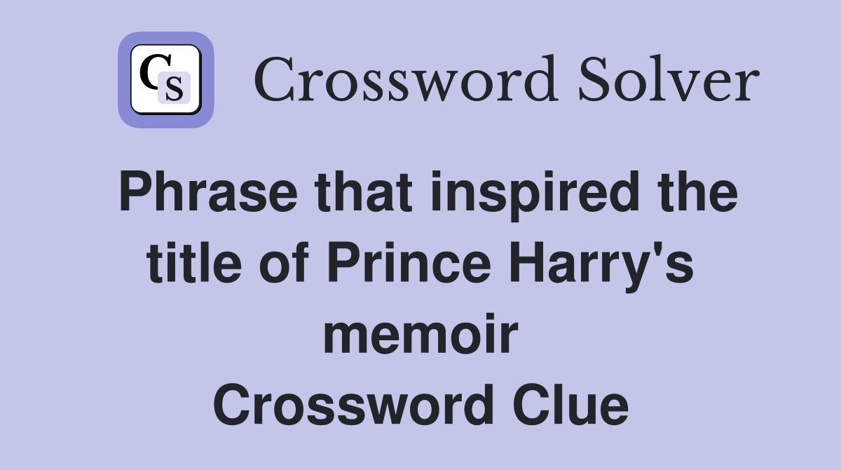 Phrase that inspired the title of Prince Harry #39 s memoir Crossword