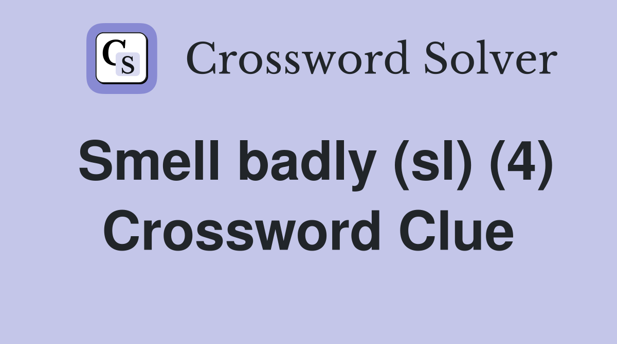 Smell badly (sl) (4) Crossword Clue Answers Crossword Solver