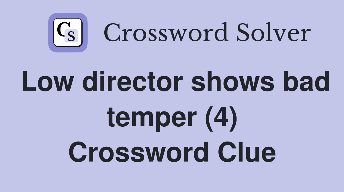 Low director shows bad temper (4) Crossword Clue Answers Crossword