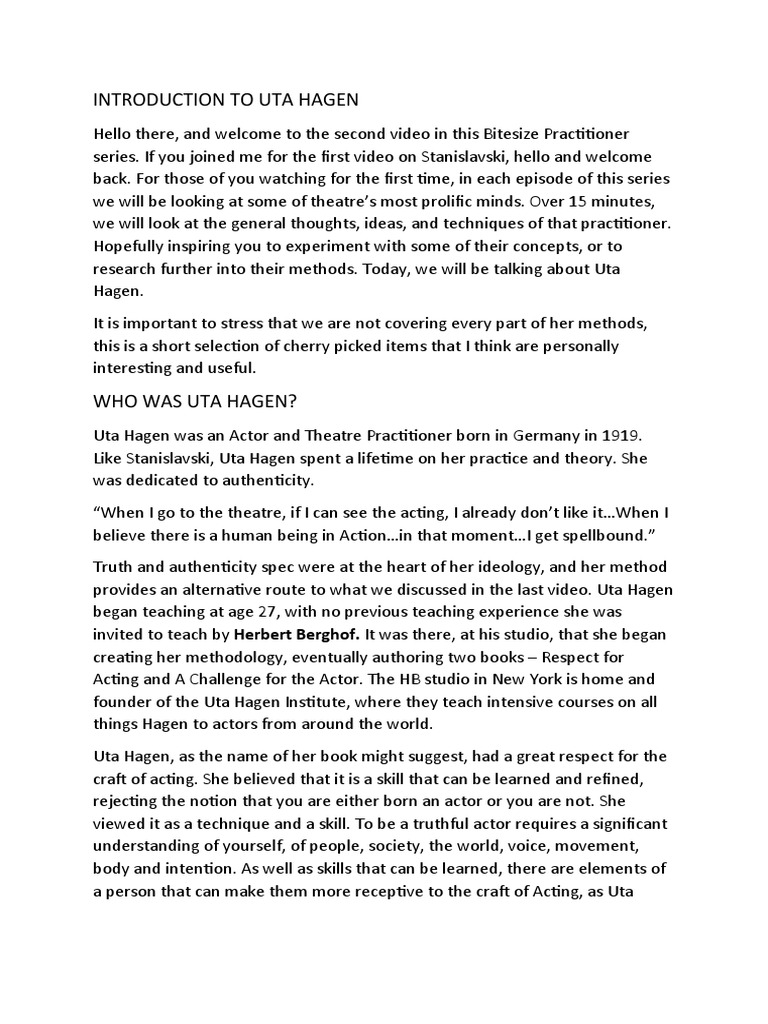 Uta Hagen Acting Theory/ Method Worksheet by Llamas love Drama TPT