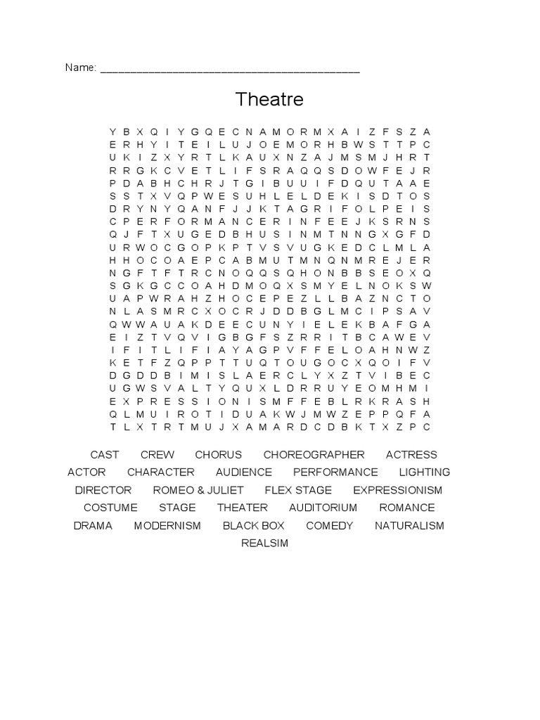 Theatre Crossword Puzzle WordMint
