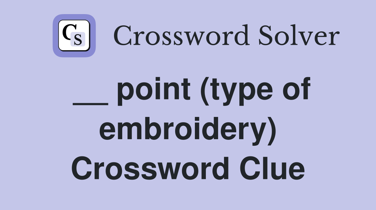 point (type of embroidery) Crossword Clue Answers Crossword Solver