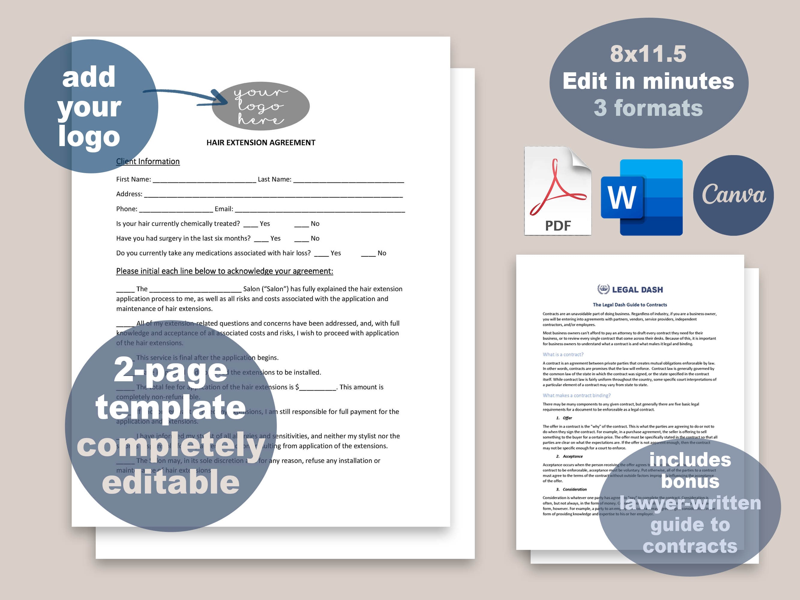 Hair Extension Contract Hair Extension Form Hair Extension Waiver Etsy