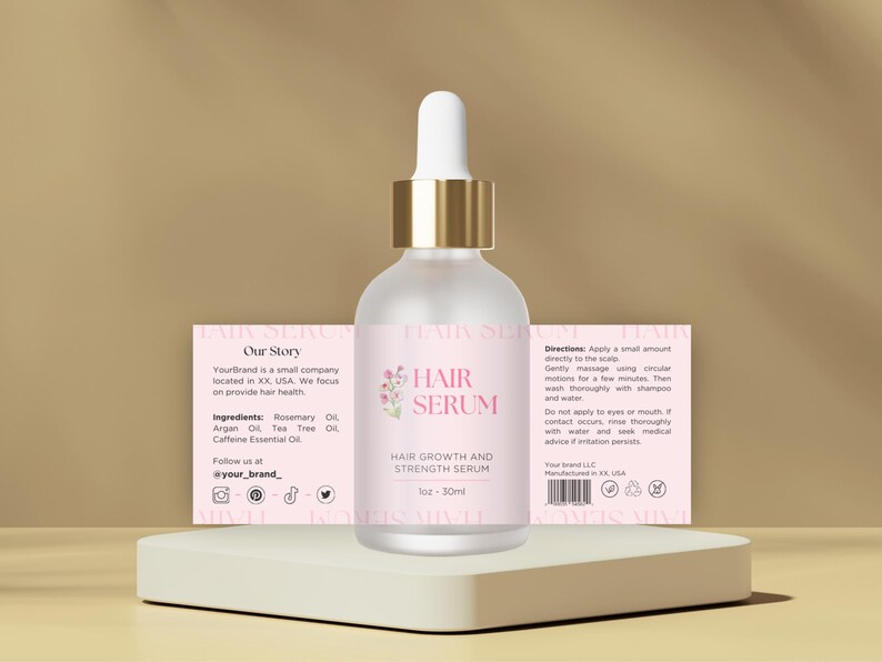 Hair Oil Bottle Label Template DIY Label Design for Dropper Bottle