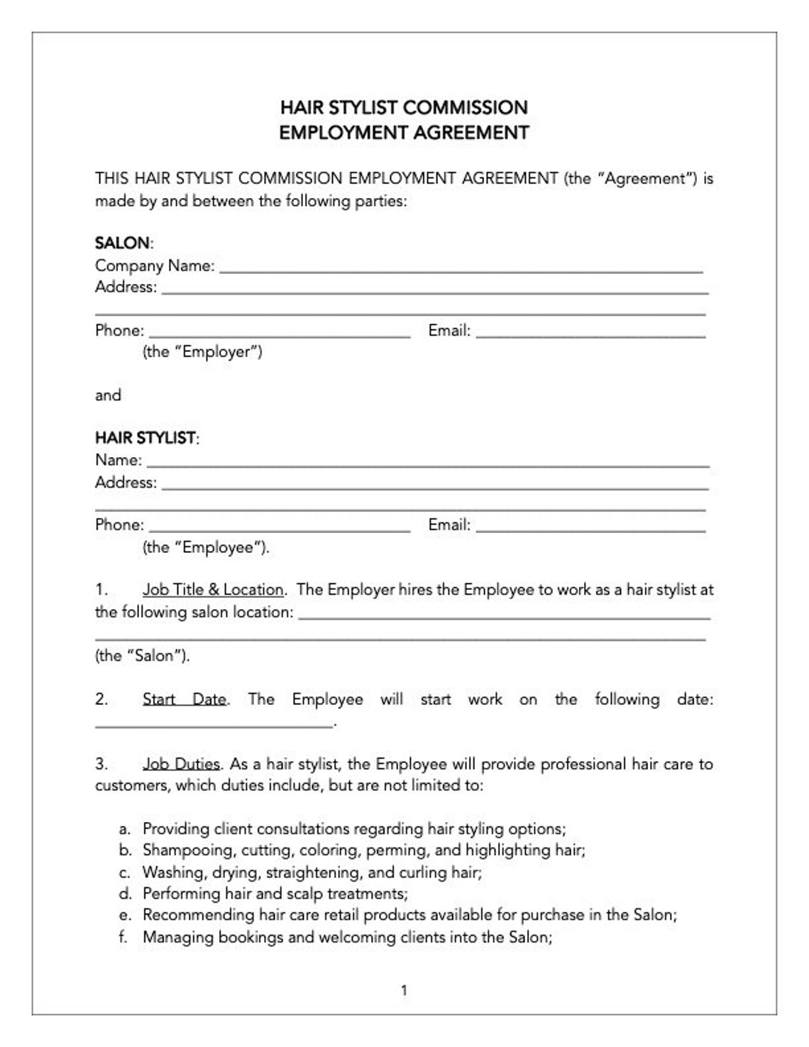 Salon Commission Agreement Hair Salon Employee Commission Contract