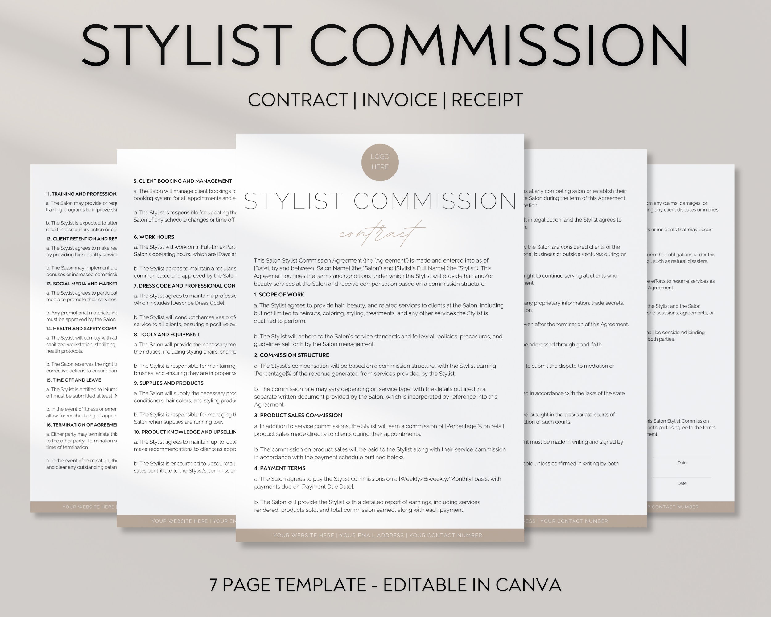 Editable and Printable Salon Stylist Commission Agreement Employeee
