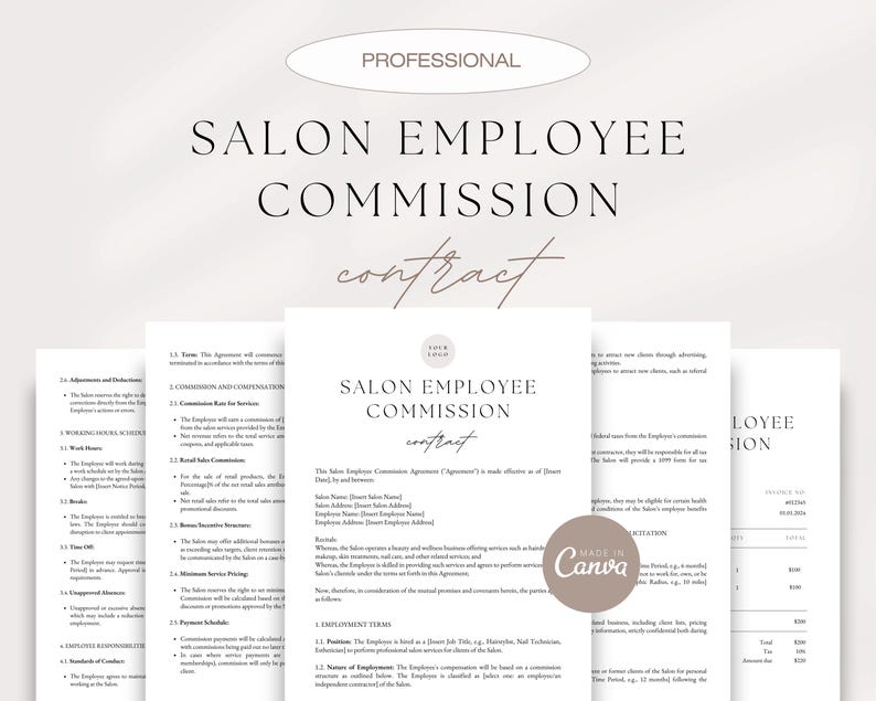 Salon Employee Commission Agreement Detailed Salon Commission Contract