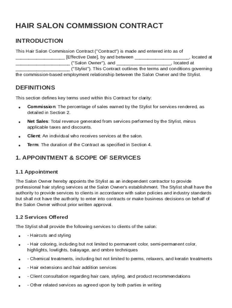 Hair Salon Commission Contract Template: Fill out sign online DocHub