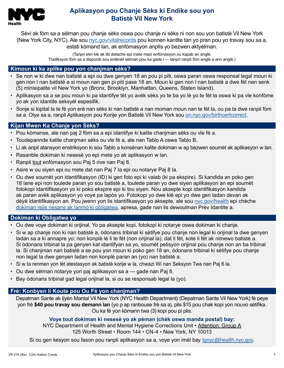 Form VR218 Fill Out Sign Online and Download Printable PDF New York