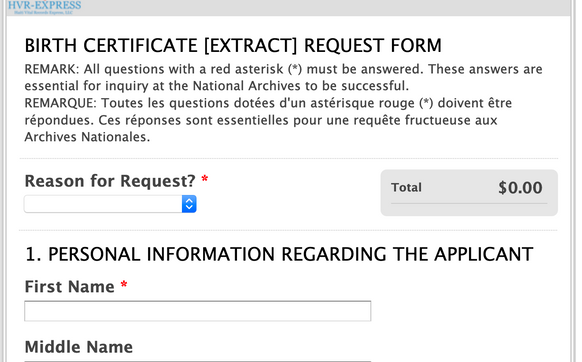 Haitian National Archives Birth Certificate