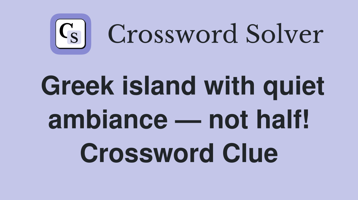 Greek island with quiet ambiance not half Crossword Clue Answers