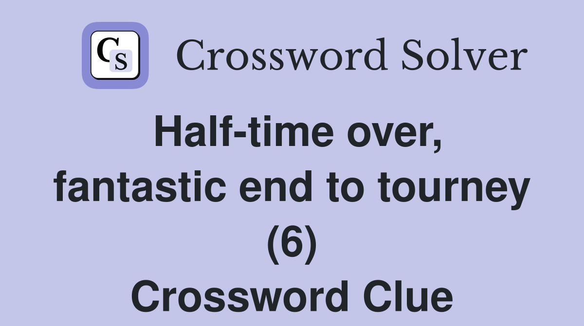 Half time over fantastic end to tourney (6) Crossword Clue Answers