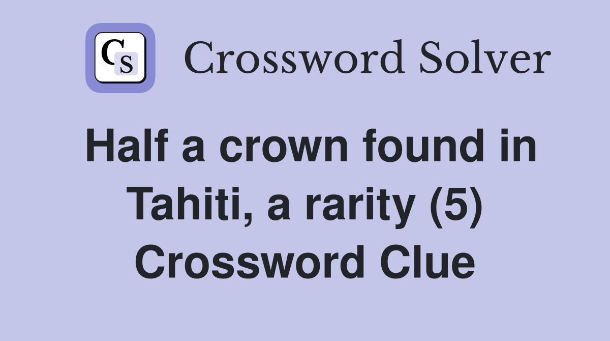 Half a crown found in Tahiti a rarity (5) Crossword Clue Answers